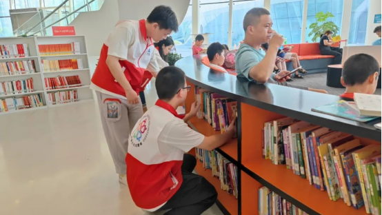 随着暑假的到来,每日读者接待量持续增长,为了更好地开展公共文化服务,图书馆招募了一批志愿者,这些志愿者的加入大大提高了图书馆的整体服务水平。其中,还有一批由未成年儿童组成的“小小图书管理员”队伍,小读者们在社会实践的同时,可以感受阅读的乐趣,领悟成长的快乐。