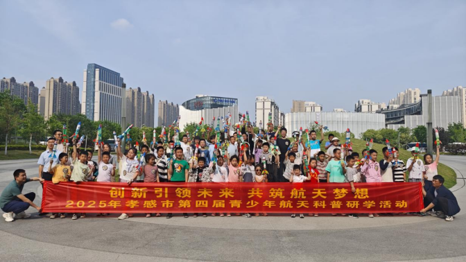 4月20日,孝感市图书馆携手湖北三江航天红阳机电有限公司,以"创新引领未来 共筑航天梦想"为主题,开展2025年孝感市第四届青少年航天科普研学活动。航天三江集团资深科普讲师梅力现场开展航天科普讲座,用通俗易懂的语言揭秘航天技术背后的科学原理带领青少年制作水火箭,并在文化中心广场成功完成发射。当水火箭如离弦之箭般迅猛升空时,孩子们欢呼声与掌声雷动。这场融合书香与航天的特色活动,既为推进全民阅读注入新活力,又通过弘扬航天精神、普及航天知识,为青少年儿童搭建了近距离体验航天科普的平台,在寓教于乐中培育青少年的科学素养,让阅读成为连接知识与实践的桥梁。